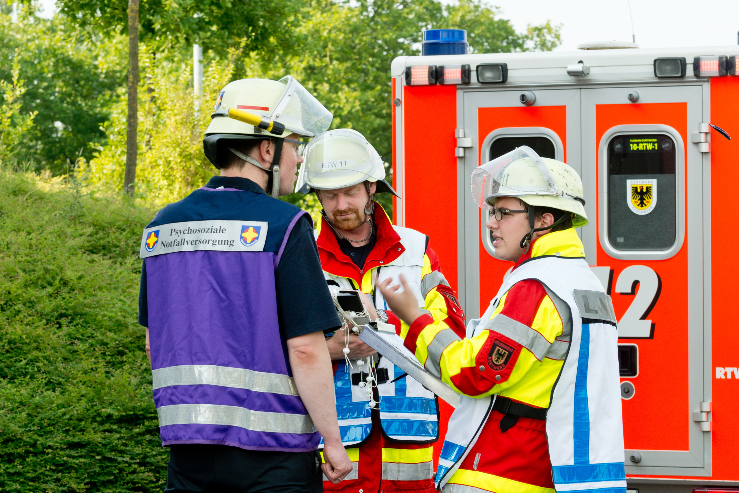 Auf Anforderung der Einsatzleitstelle der Feuerwehr Dortmund kommen wir zu Ihnen, z. B. nach dem plötzlichen Verlust eines Angehörigen, nach dem Miterleben eines Todesfalls, nach schweren Unfällen, bei Suiziden oder nach Gewaltverbrechen. Wir werden ausschließlich tätig, wenn die Feuerwehr uns ruft – meist auf Anforderung der Einsatzkräfte des Rettungsdienstes, der Feuerwehr oder der Polizei vor Ort.